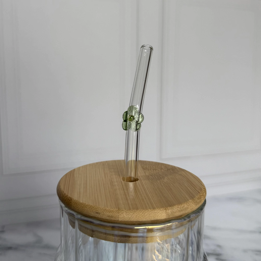 Este sorbete de vidrio reutilizable tiene un delicado aplique floral que lo convierte en esa pieza especial que hace diferente cada bebida ✨.